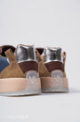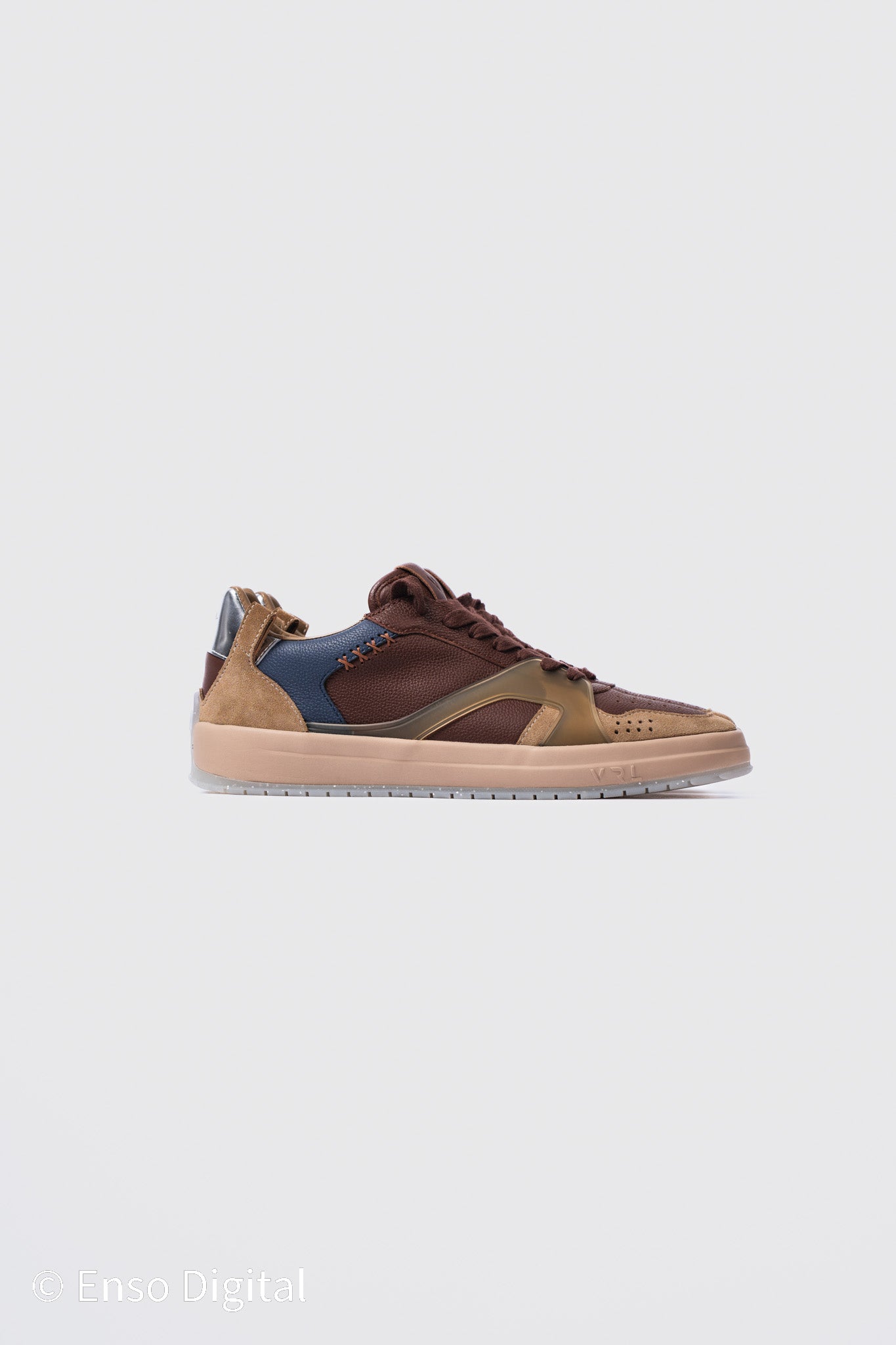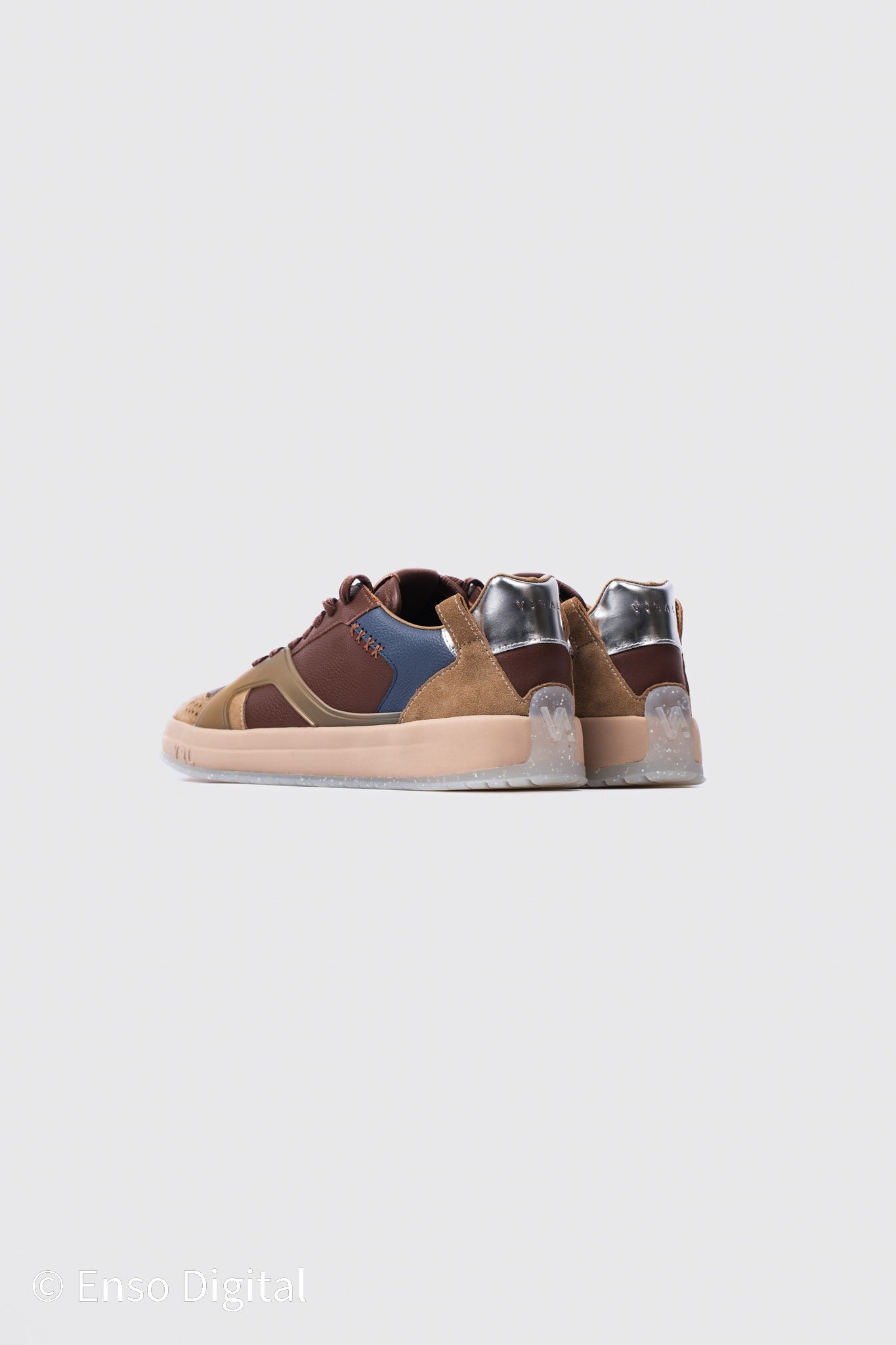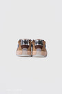 - Distinctive brown and silver design with see-through sole