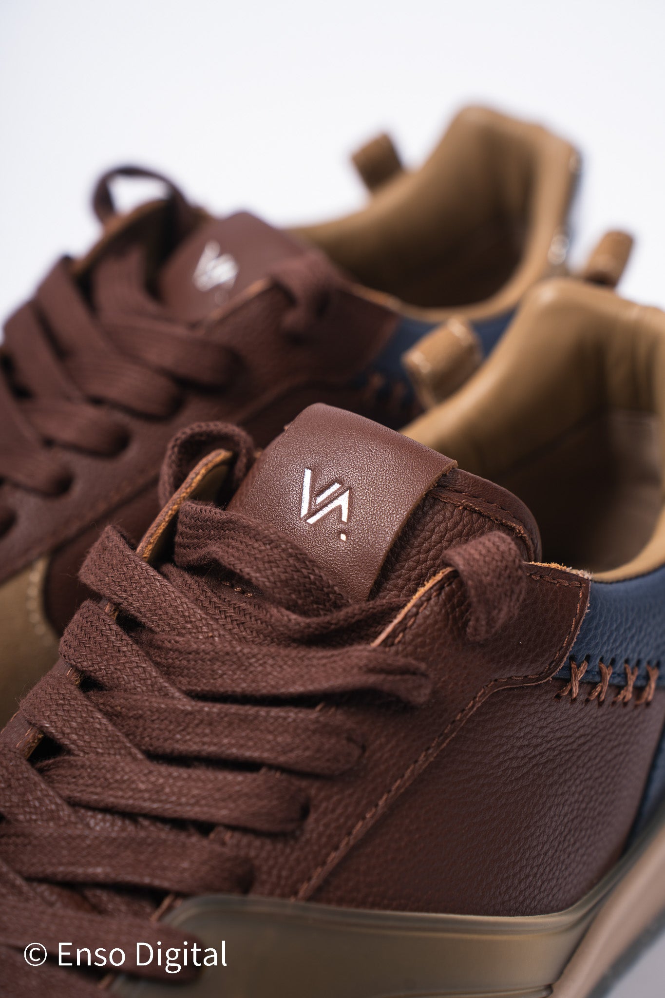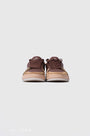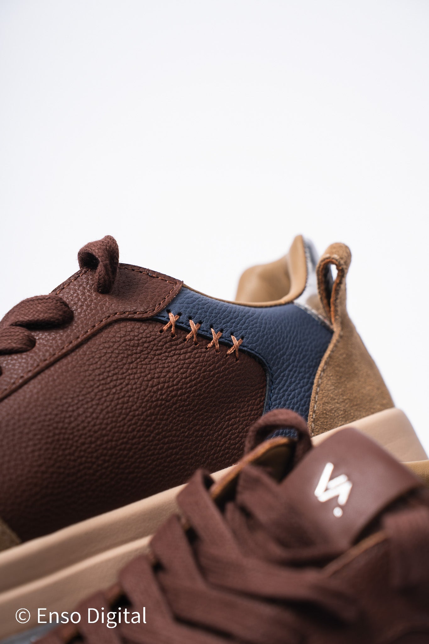 - Brown full-grain leather upper with silver accents
