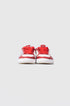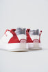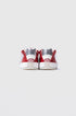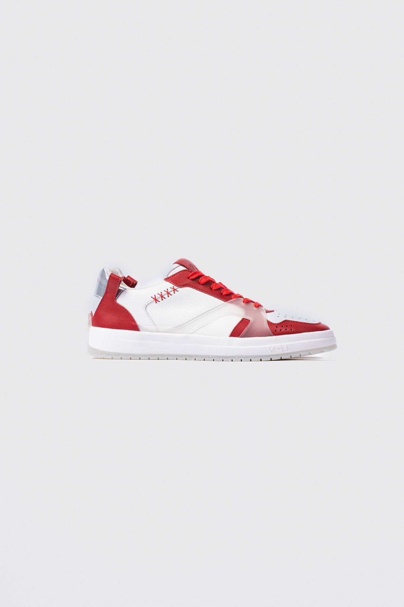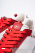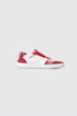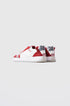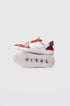 - White full-leather upper with red and silver accents